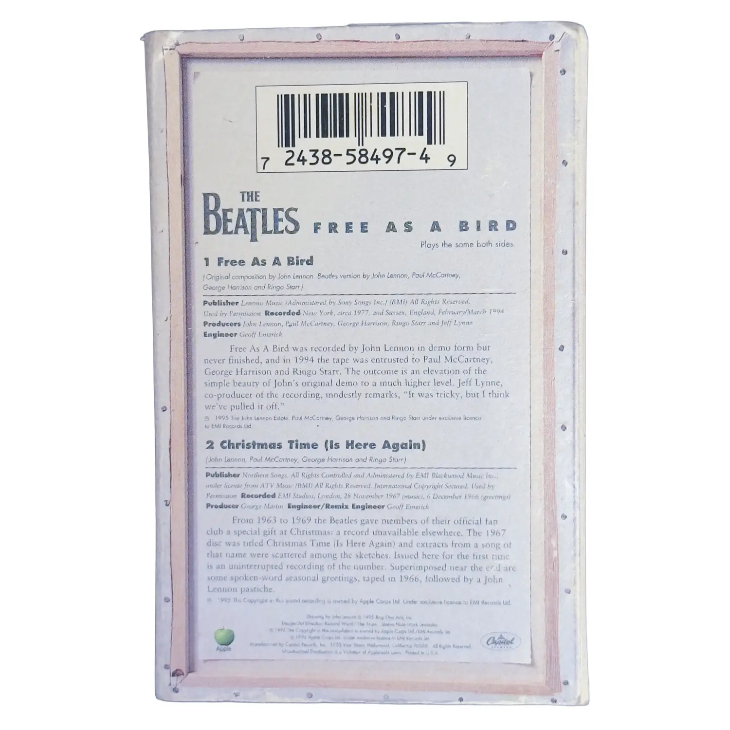 El sencillo incluyó como lado B “Christmas Time (Is Here Again)”, una grabación original de 1967, realizada por el grupo para sus tradicionales mensajes navideños del fan club. Con humor, espíritu festivo y ese inconfundible encanto beatle, la canción ofrece un contraste perfecto con la melancolía de Free As a Bird.